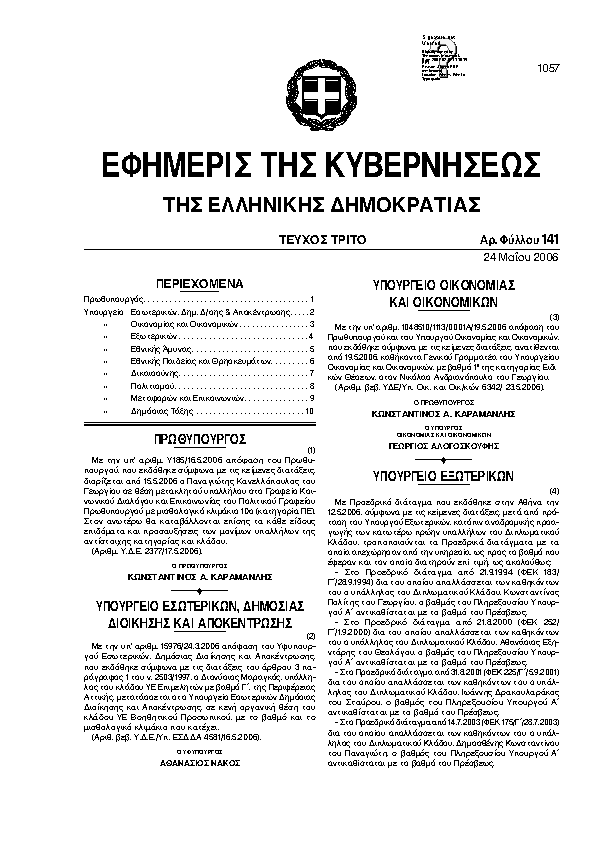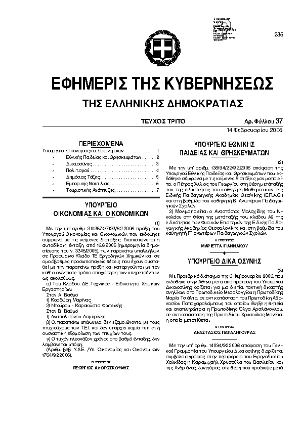 Αναζήτηση στα ΦΕΚ για:  πρόσληψη