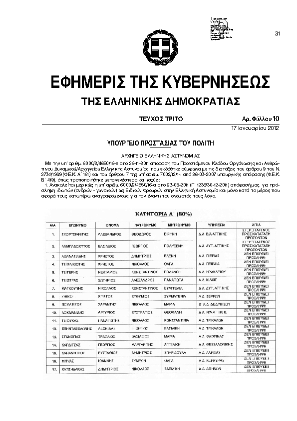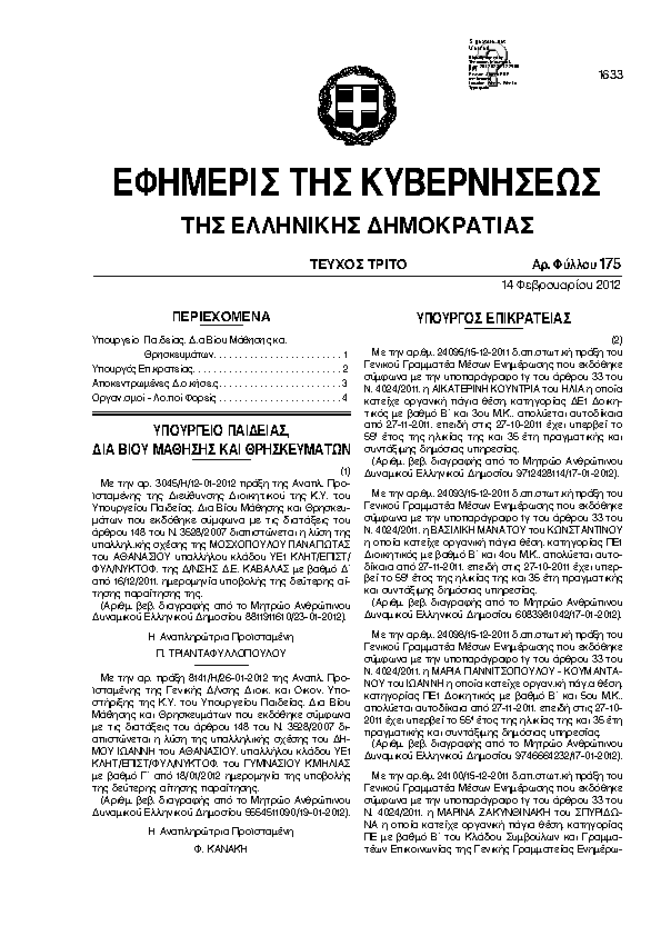 Αναζήτηση στα ΦΕΚ για:  πρόσληψη