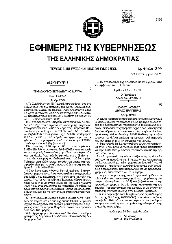Αναζήτηση στα ΦΕΚ για:  σιθωνιασ