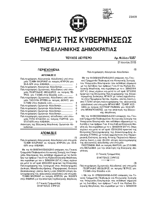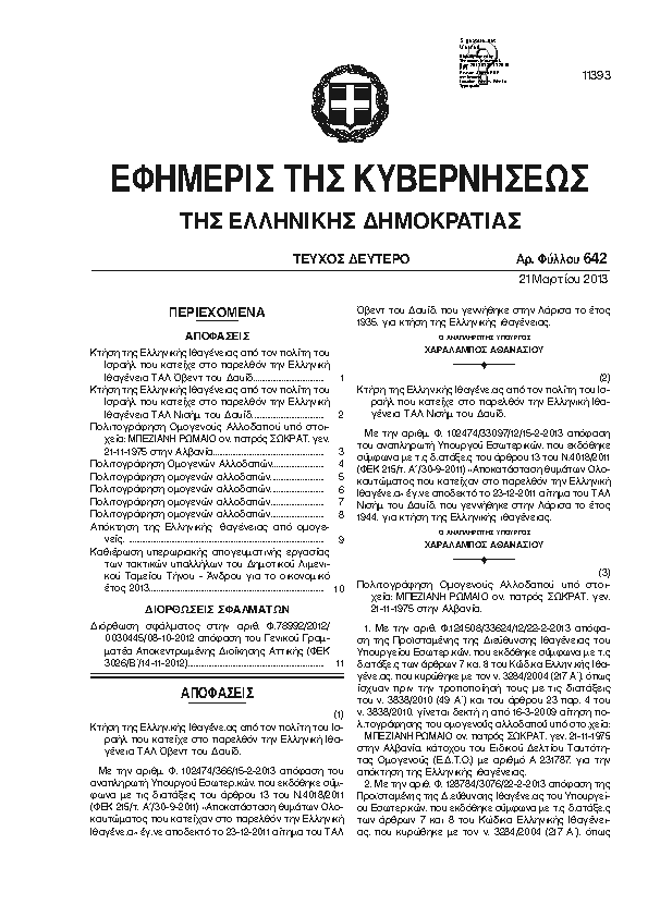 Αναζήτηση στα ΦΕΚ για:  σιθωνιασ