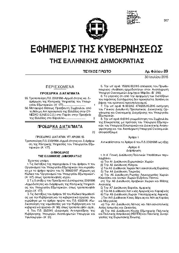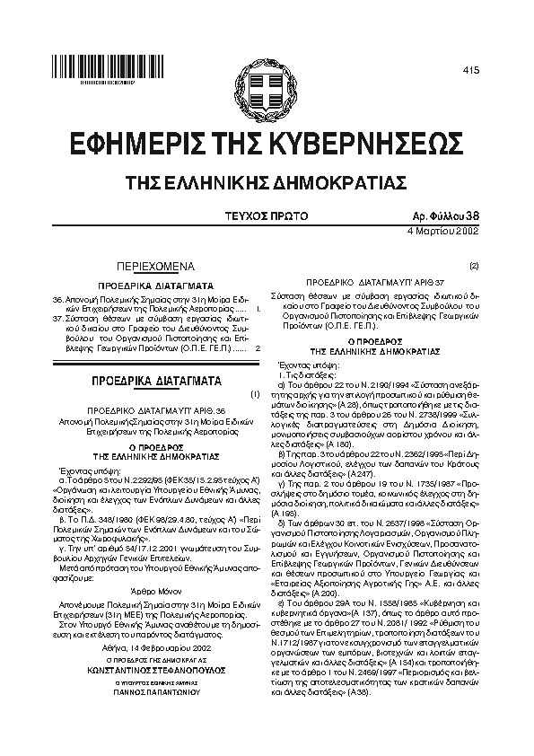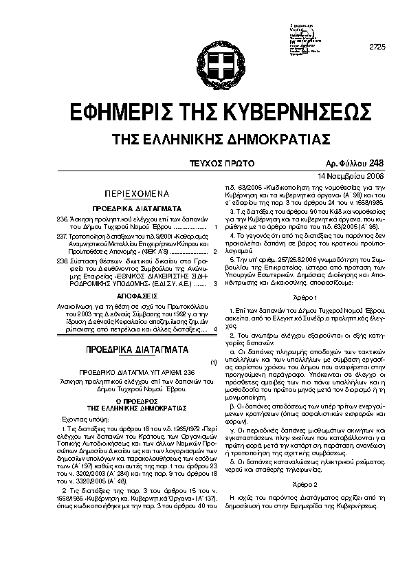 ΤΡΟΠΟΠΟΙΗΣΗ ΤΟΥ Π.Δ/ΤΟΣ 208/2000 «ΣΥΣΤΑΣΗ ΕΙΔΙΚΗΣ ΥΠΗΡΕΣΙΑΣ ΔΗΜΟΣΙΩΝ ΕΡΓΩΝ ΓΙΑ ΤΗΝ ΜΕΛΕΤΗ ΚΑΙ ΚΑΤΑΣΚΕΥΗ ΤΟΥ ΕΡΓΟΥ ΒΟΡΕΙΟΣ ΟΔΙΚΟΣ ΑΞΟΝΑΣ ΚΡΗΤΗΣ (ΕΥΔΕ/Β.Ο.Α.Κ.) » (ΦΕΚ Α’ 187).