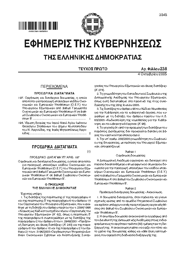 ΟΡΓΑΝΩΣΗ ΚΑΙ ΔΙΕΝΕΡΓΕΙΑ ΔΟΚΙΜΑΣΙΑΣ, Η ΟΠΟΙΑ ΑΠΑΙΤΕΙΤΑΙ ΓΙΑ ΠΡΟΑΓΩΓΗ ΥΠΑΛΛΗΛΩΝ ΚΛΑΔΟΥ ΟΙΚΟΝΟΜΙΚΩΝ ΚΑΙ ΕΜΠΟΡΙΚΩΝ ΥΠΟΘΕΣΕΩΝ (ΟΕΥ) ΤΟΥ ΥΠΟΥΡΓΕΙΟΥ ΕΞΩΤΕΡΙΚΩΝ ΑΠΟ ΒΑΘΜΟ ΓΡΑΜΜΑΤΕΑ ΟΙΚΟΝΟΜΙΚΩΝ ΚΑΙ ΕΜΠΟΡΙΚΩΝ ΥΠΟΘΕΣΕΩΝ Α΄ ΣΕ ΒΑΘΜΟ ΣΥΜΒΟΥΛΟΥ ΟΙΚΟΝΟΜΙΚΩΝ ΚΑΙ ΕΜΠ