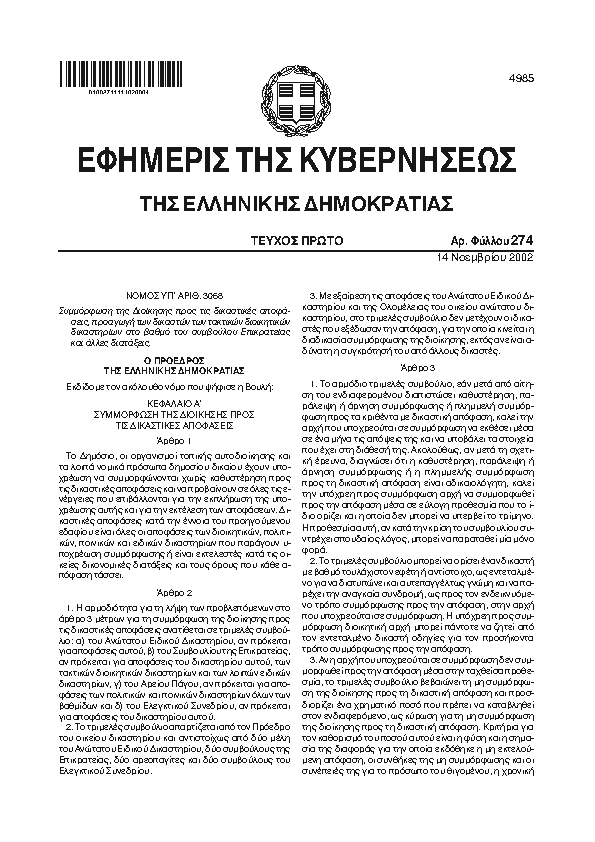 ΣΥΜΜΟΡΦΩΣΗ ΤΗΣ ΔΙΟΙΚΗΣΗΣ ΠΡΟΣ ΤΙΣ ΔΙΚΑΣΤΙΚΕΣ ΑΠΟΦΑΣΕΙΣ, ΠΡΟΑΓΩΓΗ ΤΩΝ ΔΙΚΑΣΤΩΝ ΤΩΝ ΤΑΚΤΙΚΩΝ ΔΙΟΙΚΗΤΙΚΩΝ ΔΙΚΑΣΤΗΡΙΩΝ ΣΤΟ ΒΑΘΜΟ ΤΟΥ ΣΥΜΒΟΥΛΟΥ ΕΠΙΚΡΑΤΕΙΑΣ ΚΑΙ ΑΛΛΕΣ ΔΙΑΤΑΞΕΙΣ