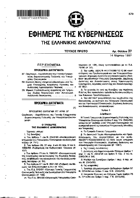 1. ΦΕΚ 8/A, 1997 http://www.et.gr/