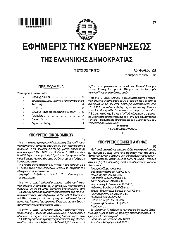 Αναζήτηση στα ΦΕΚ για:  συμβούλου