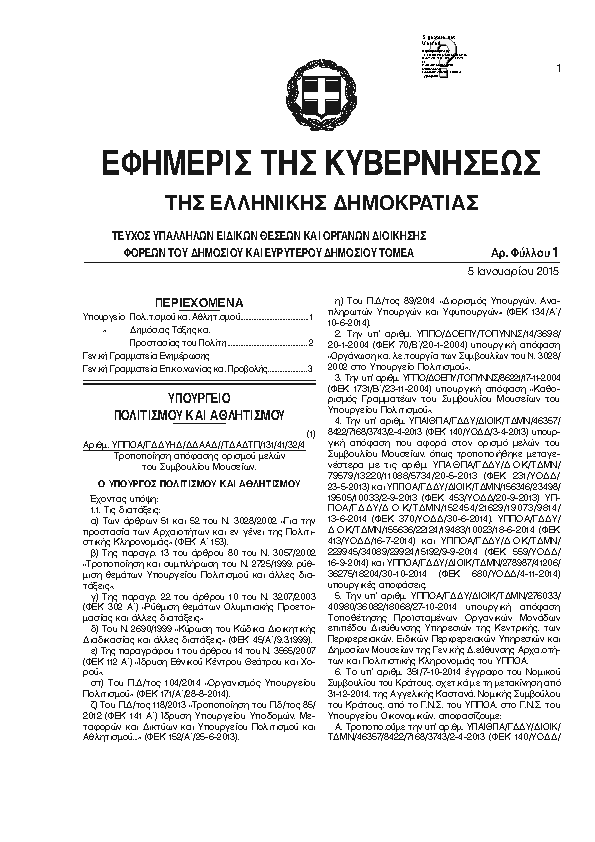 Αναζήτηση στα ΦΕΚ για:  συμβούλου
