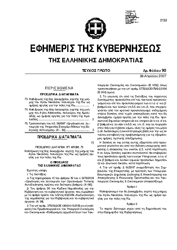 4. ΦΕΚ 90/A, 2007 http://www.et.gr/