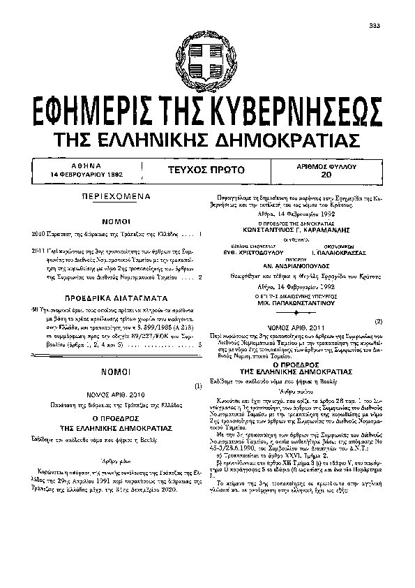 1. ΦΕΚ 3/A, 1992 http://www.et.gr/