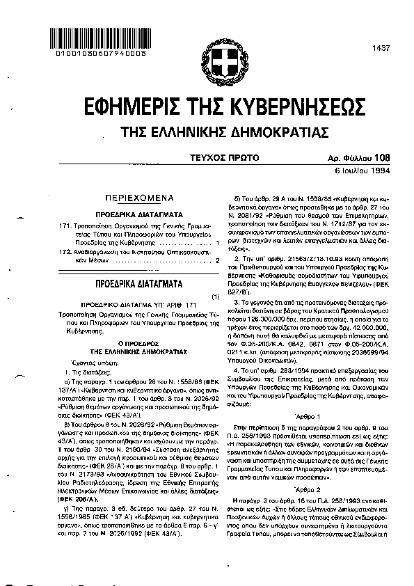 7. ΦΕΚ 108/A, 1994 http://www.et.gr/