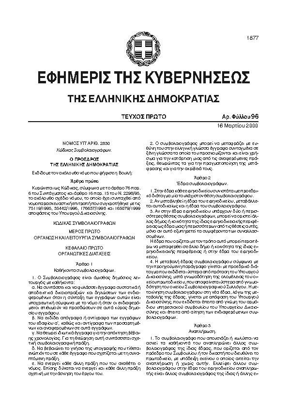 6. ΦΕΚ 96/A, 2000 http://www.et.gr/ Νόμος