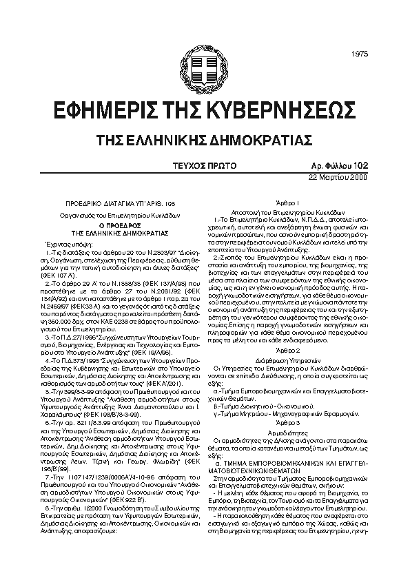 7. ΦΕΚ 102/A, 2000 http://www.et.gr/ Προεδρικό Διάταγμα