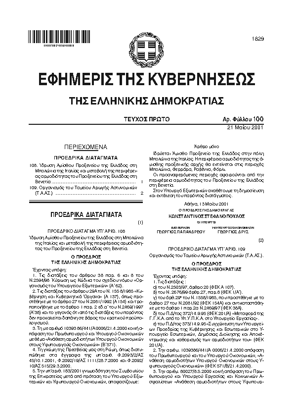 1. ΦΕΚ 3/A, 2001 http://www.et.gr/
