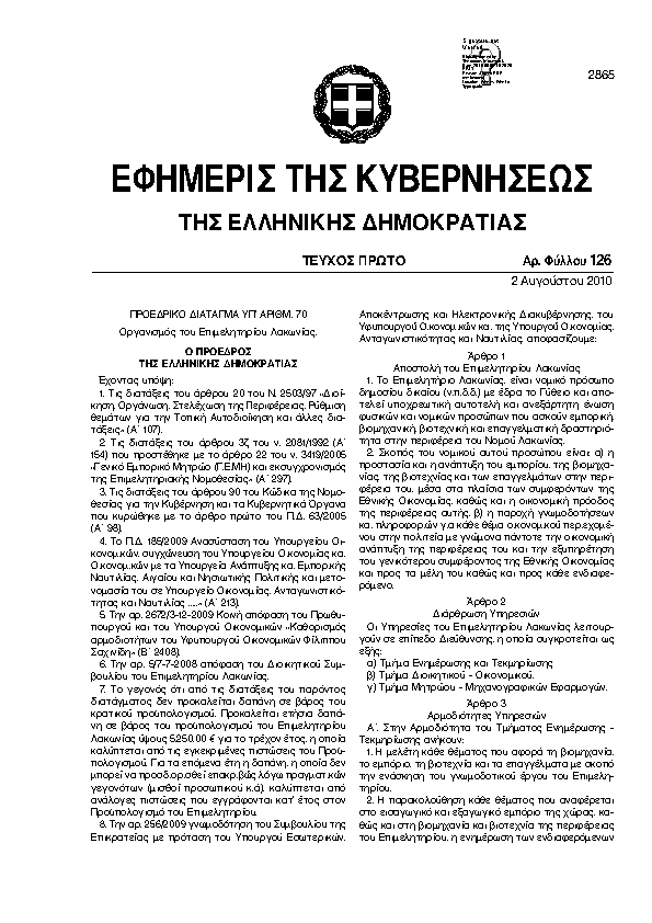 4. ΦΕΚ 97/A, 2010 http://www.et.gr/