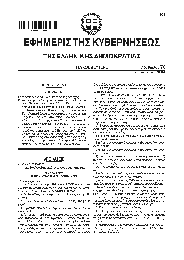 Αναζήτηση στα ΦΕΚ για:  φύλαξη