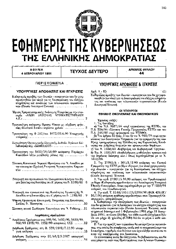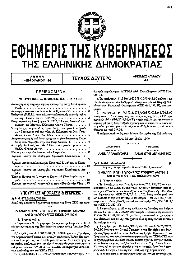 Αναζήτηση στα ΦΕΚ για:  φύλαξη