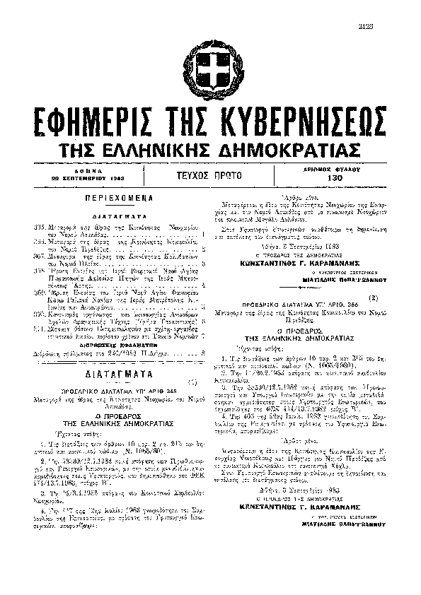 1. ΦΕΚ 130/A, 1983 http://www.et.gr/