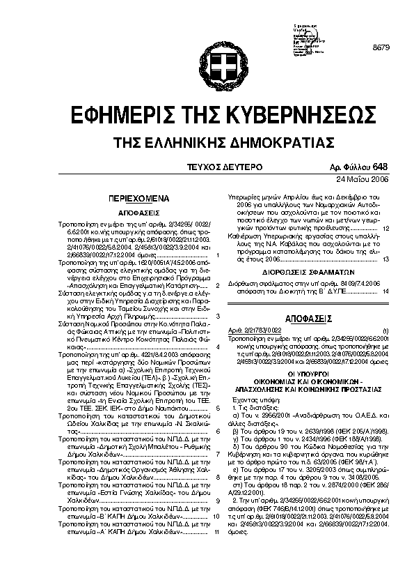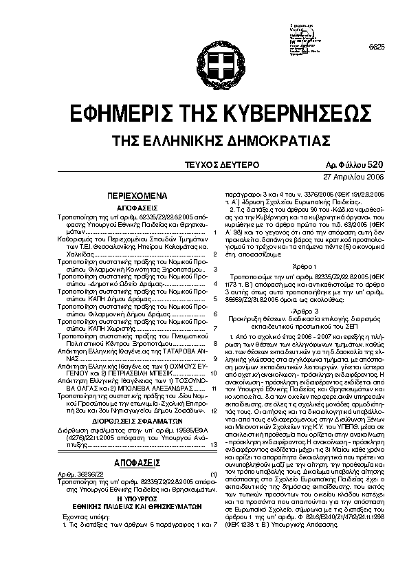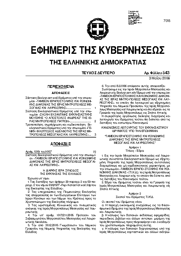Αναζήτηση στα ΦΕΚ για:  ωδείο