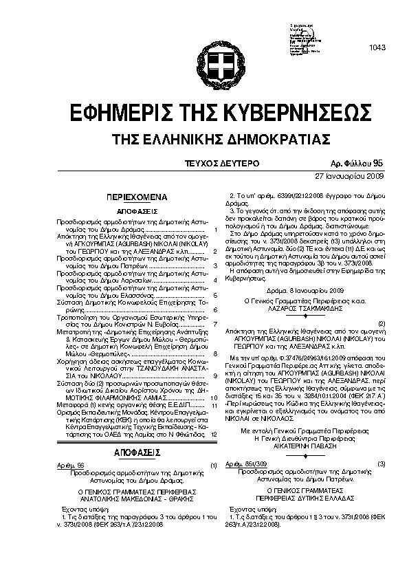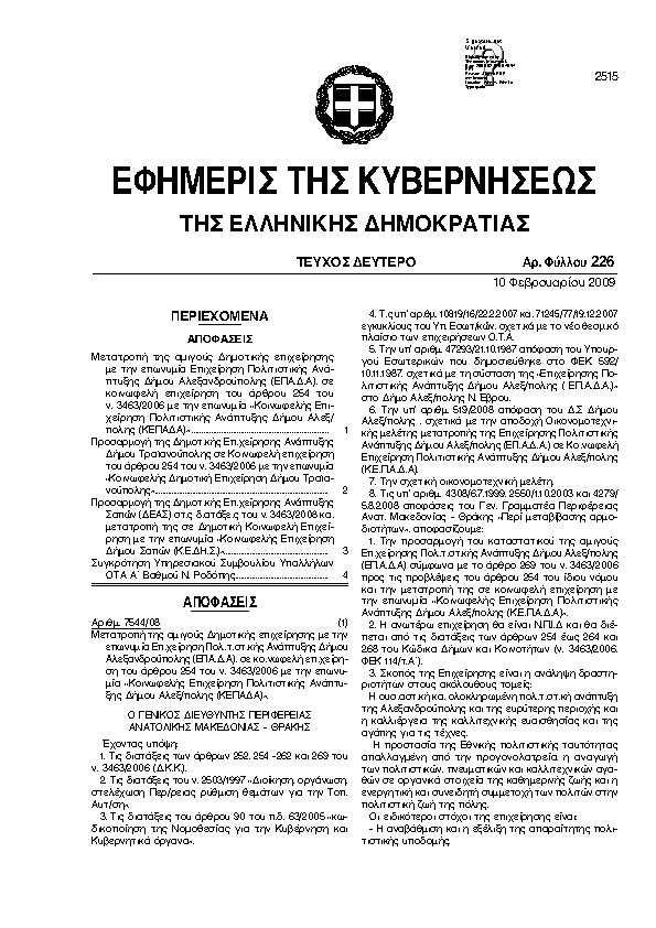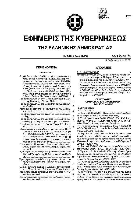 Αναζήτηση στα ΦΕΚ για:  ωδείο