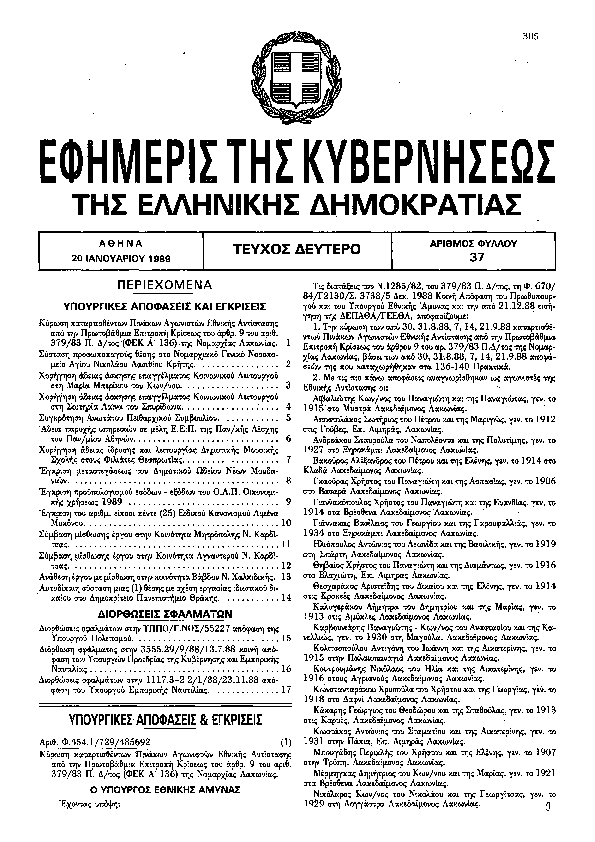 Αναζήτηση στα ΦΕΚ για:  ωδείο
