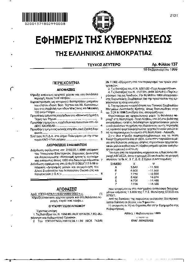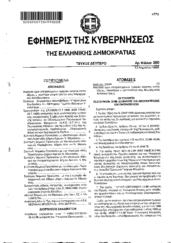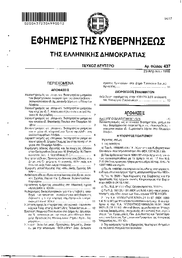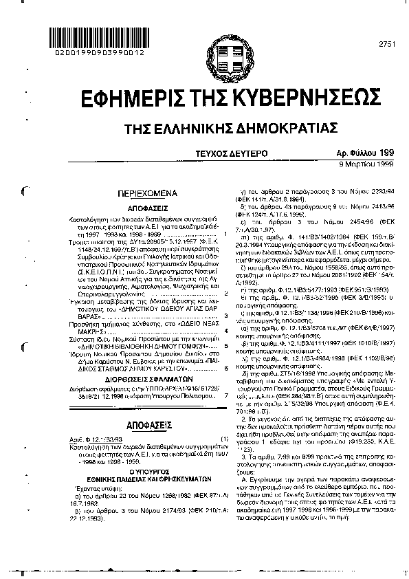 Αναζήτηση στα ΦΕΚ για:  ωδείο