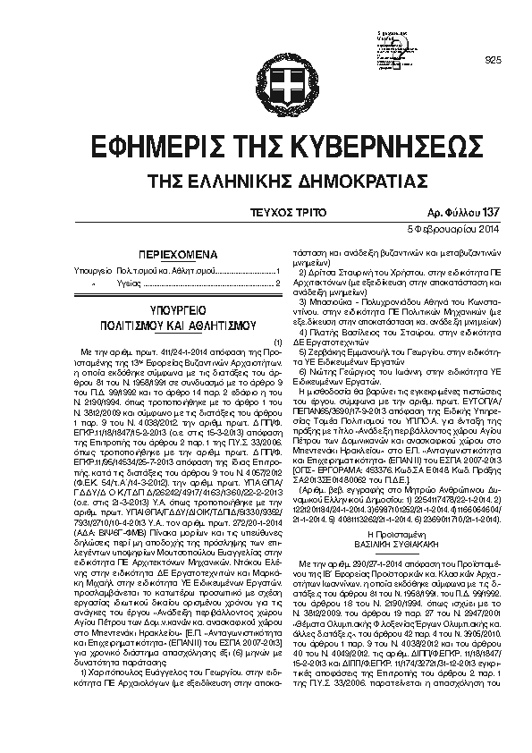 Αναζήτηση στα ΦΕΚ για:  ωδείο