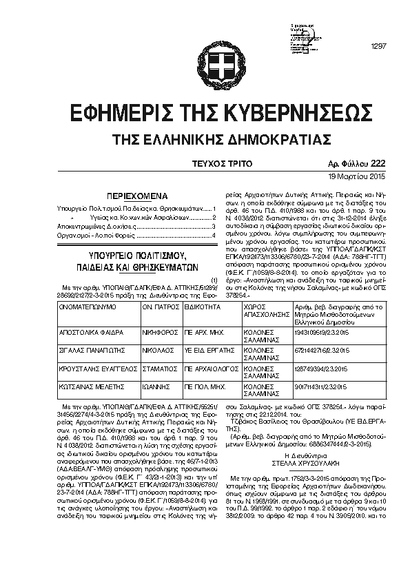 Αναζήτηση στα ΦΕΚ για:  ωδείο