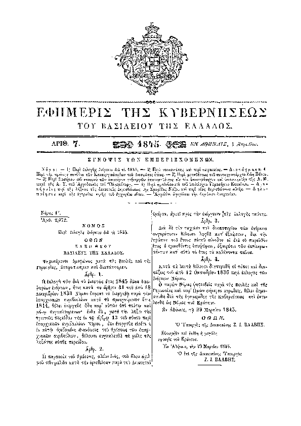 10. ΦΕΚ 7/A, 1845 http://www.et.gr/ Νόμος
