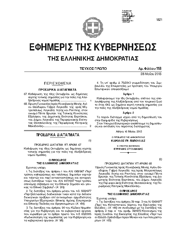 2. ΦΕΚ 118/A, 2013 http://www.et.gr/