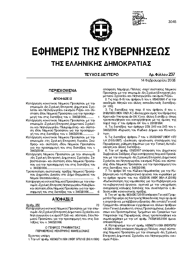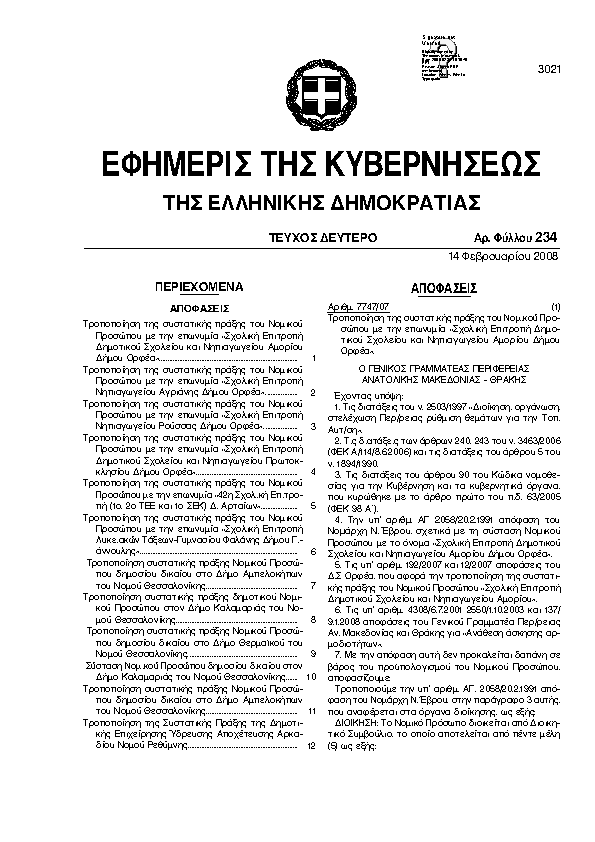 Αναζήτηση στα ΦΕΚ για:  18η