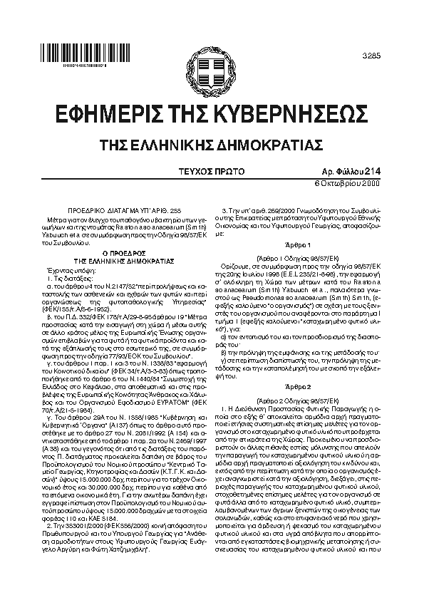 ΜΕΤΡΑ ΓΙΑ ΤΟΝ ΕΛΕΓΧΟ ΤΟΥ ΠΑΘΟΓΟΝΟΥ ΒΑΚΤΗΡΙΟΥ ΤΩΝ ΓΕΩΜΗΛΩΝ ΚΑΙ ΤΗΣ ΝΤΟΜΑΤΑΣ RALSTONIA SOLANACEARUM SMITH YABUUCHI ET AL ΣΕ ΣΥΜΜΟΡΦΩΣΗ ΠΡΟΣ ΤΗΝ ΟΔΗΓΙΑ 98/57/ΕΚ ΤΟΥ ΣΥΜΒΟΥΛΙΟΥ