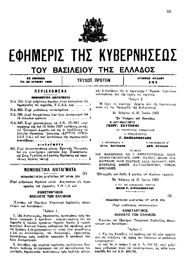 4. ΦΕΚ 7/A, 1969 http://www.et.gr/ Νομοθετικό Διάταγμα