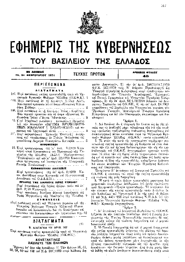 4. ΦΕΚ 40/A, 1971 http://www.et.gr/