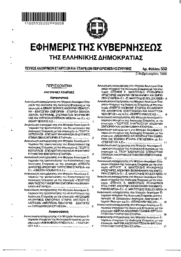 4. ΦΕΚ 84/A, 1999 http://www.et.gr/