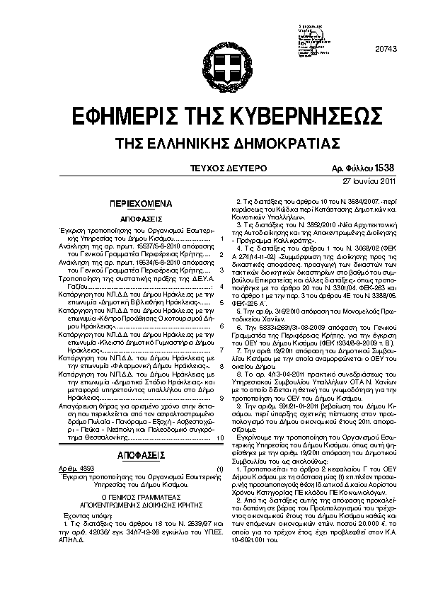 ΦΕΚ 1538/B, 2011