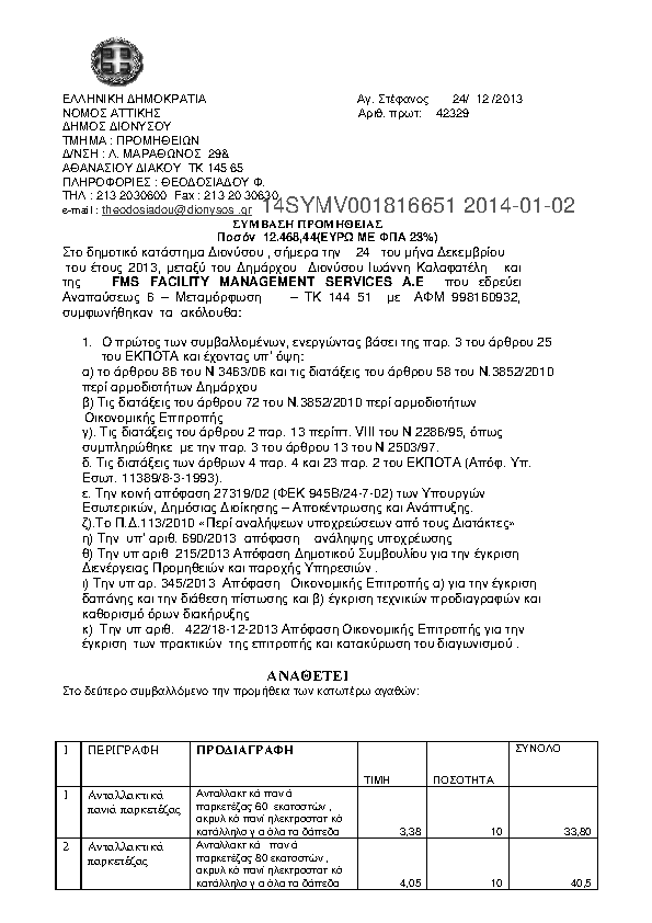 Αναζήτηση σε προκηρύξεις και συμβάσεις για: