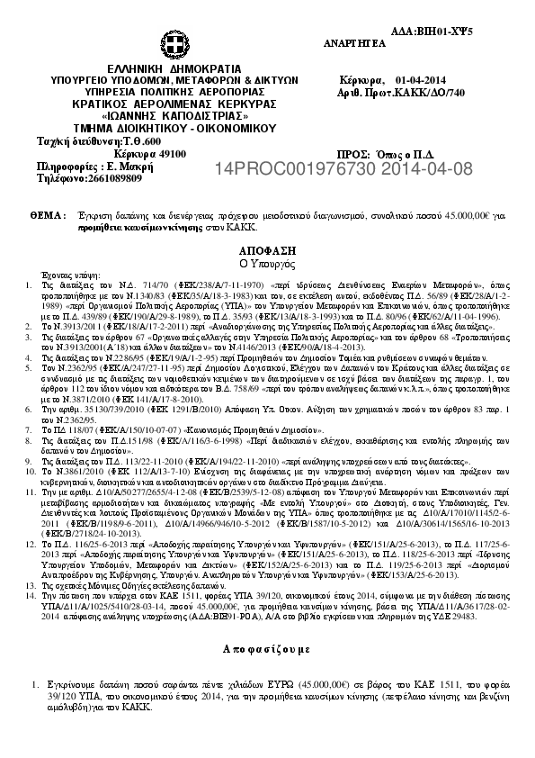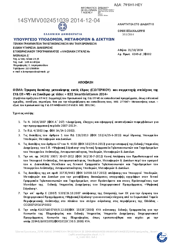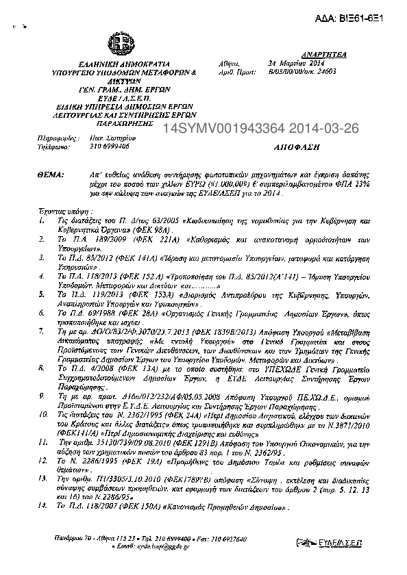 Άλλα σχετικά με "'Εγκριση δαπάνης για τις"