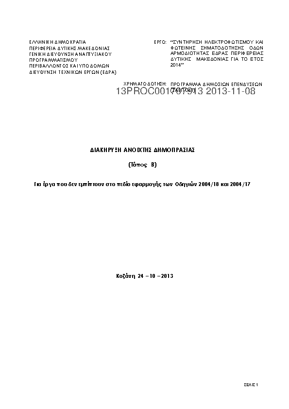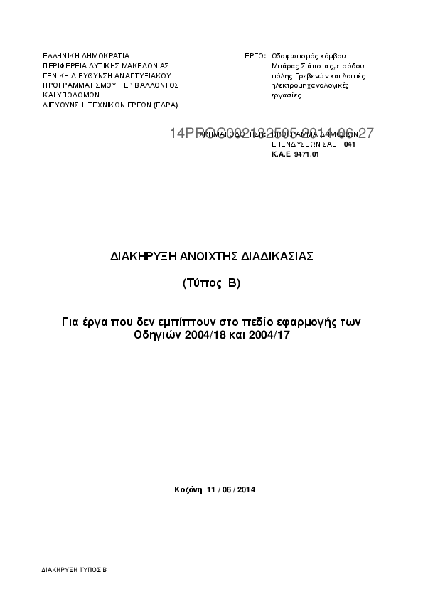 9. ΠΕΡΙΛΗΨΗΣ ΔΙΑΚΗΡΥΞΗΣ ΔΗΜΟΠΡΑΣΙΑΣ ΤΟΥ ΕΡΓΟΥ: “Οδοφωτισμός κόμβου Μπάρας Σιάτιστας, εισόδου πόλης Γρεβενών και λοιπές ηλεκτρομηχανολογικές εργασίες”