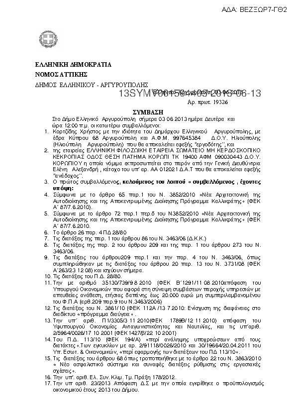 4. ΣΥΜΒΑΣΗ ΠΑΡΟΧΗΣ ΥΠΗΡΕΣΙΩΝ "ΠΡΟΓΡΑΜΜΑ ΠΡΟΣΤΑΣΙΑΣ ΑΔΕΣΠΟΤΩΝ ΖΩΩΝ "