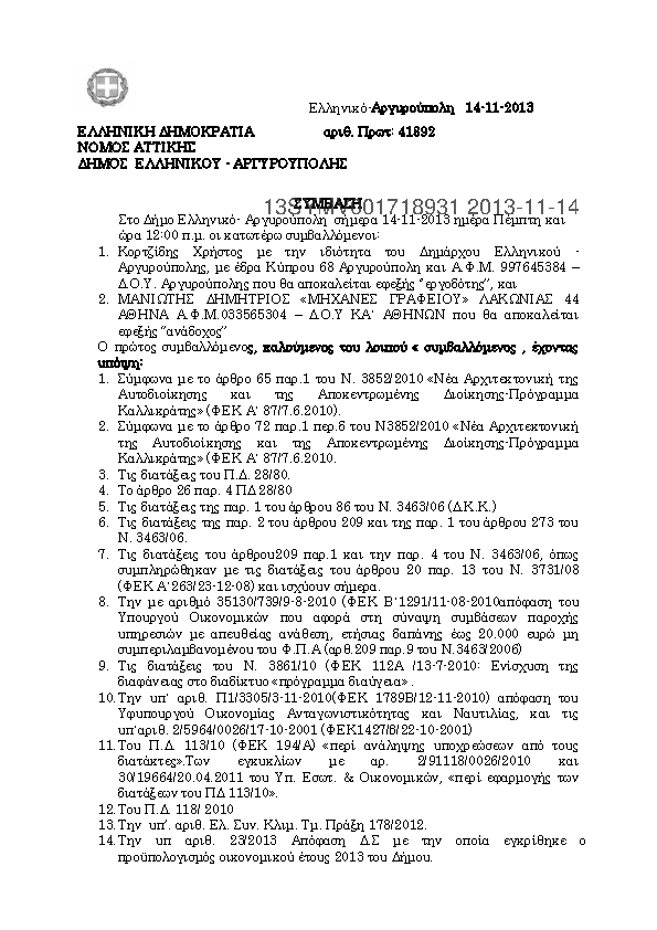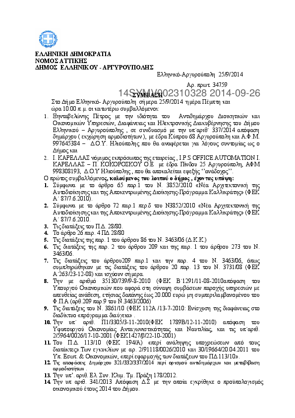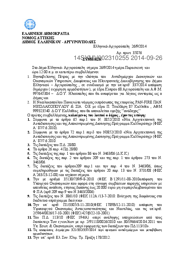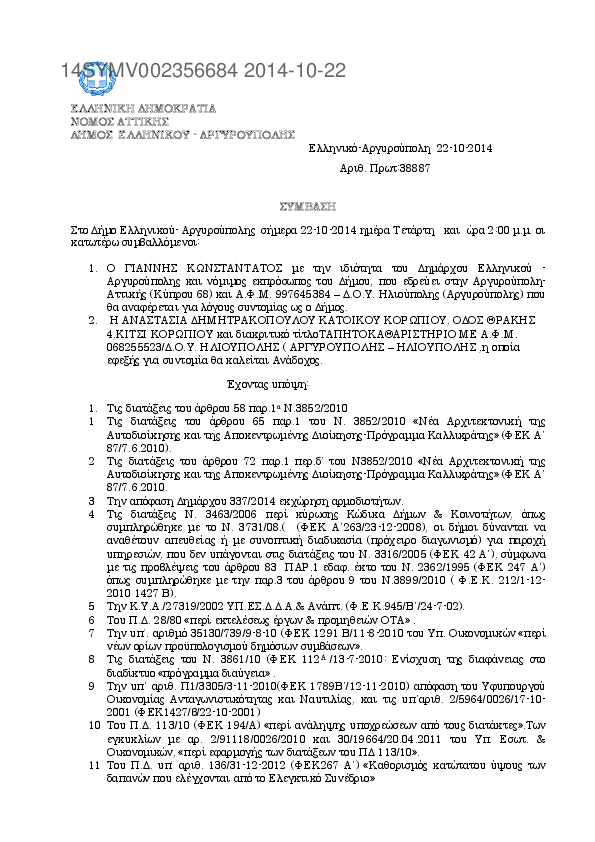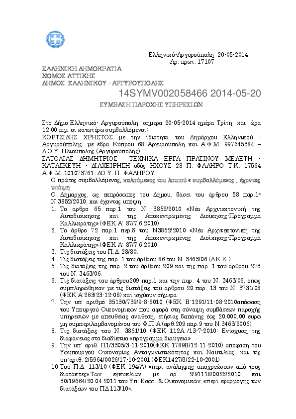 1. ΣΥΜΒΑΣΗ ΓΙΑ ΣΥΝΤΗΡΗΣΗ ΑΝΕΛΚΥΣΤΗΡΩΝ ΒΡΕΦ/ΚΟΥ ΣΤΑΘΜΟΥ ΕΠΙ ΤΗΣ ΟΔΟΥ ΚΟΜΝΗΝΩΝ 34Β ΔΗΜΟΥ ΕΛΛΗΝΙΚΟΥ