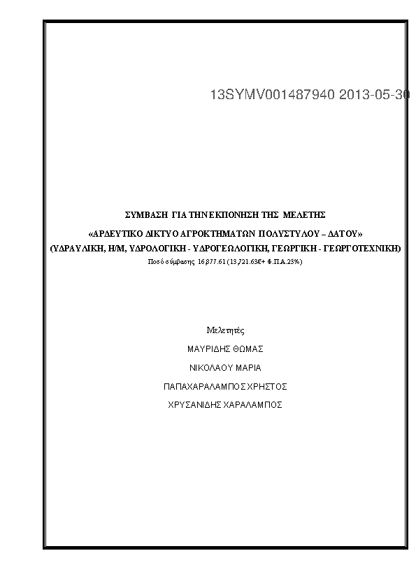 4. ΜΕΛΕΤΗ «ΑΡΔΕΥΤΙΚΟ ΔΙΚΤΥΟ ΑΓΡΟΚΤΗΜΑΤΩΝ ΠΟΛΥΣΤΥΛΟΥ – ΔΑΤΟΥ»