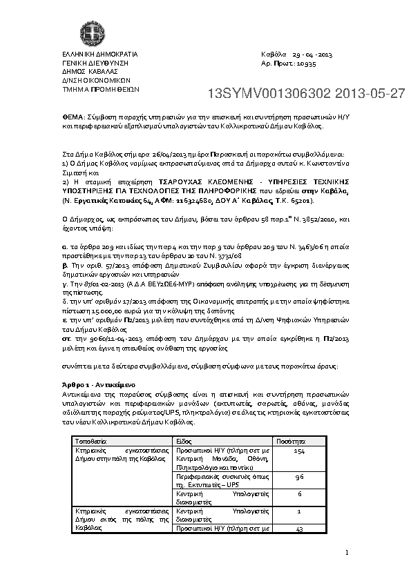 9. Σύμβαση παροχής υπηρεσιών για την επισκευή και συντήρηση προσωπικών Η/Υ και περιφερειακού εξοπλισμού