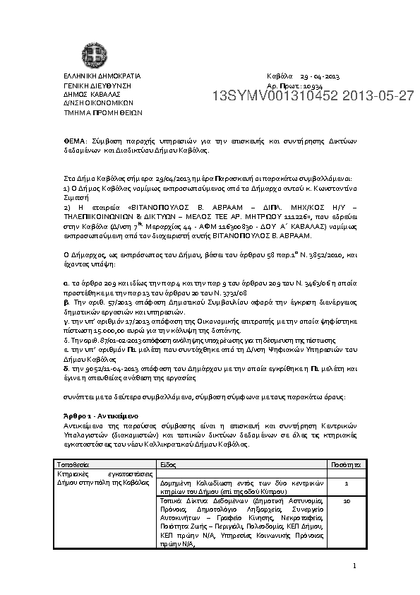 7. Σύμβαση παροχής υπηρεσιών για την επισκευής και συντήρησης Δικτύων δεδομένων και Διαδικτύου Δήμου