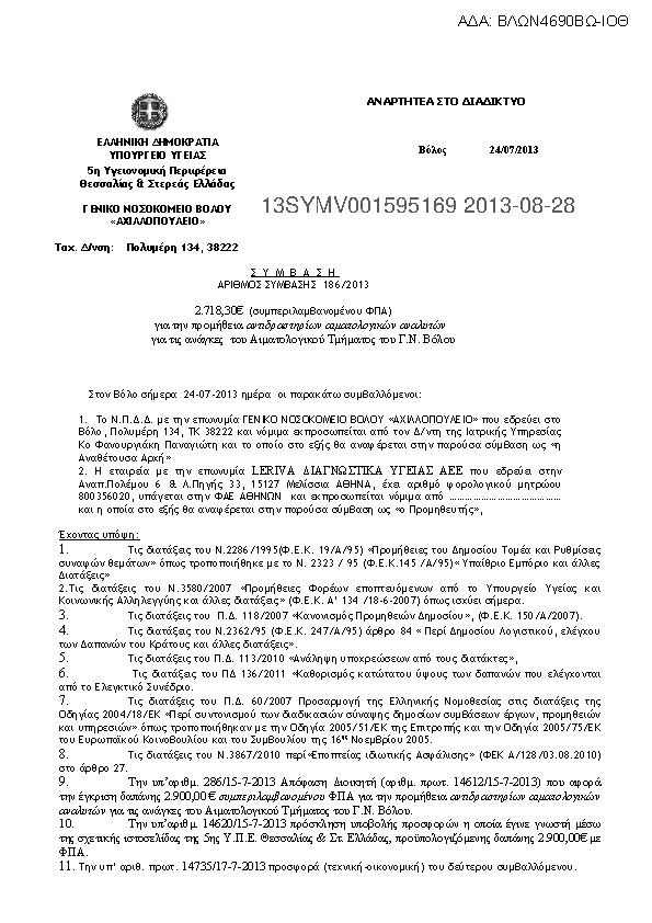 9. ΠΕΡΙΛΗΨΗ & ΔΙΑΚΗΡΥΞΗ ΑΡΙΘΜΟΣ 33/2013 ΓΙΑ ΤΗΝ ΠΡΟΜΗΘΕΙΑ ΔΙΑΦΟΡΩΝ ΑΝΤΑΛΛΚΤΙΚΩΝ ΓΝ ΒΟΛΟΥ