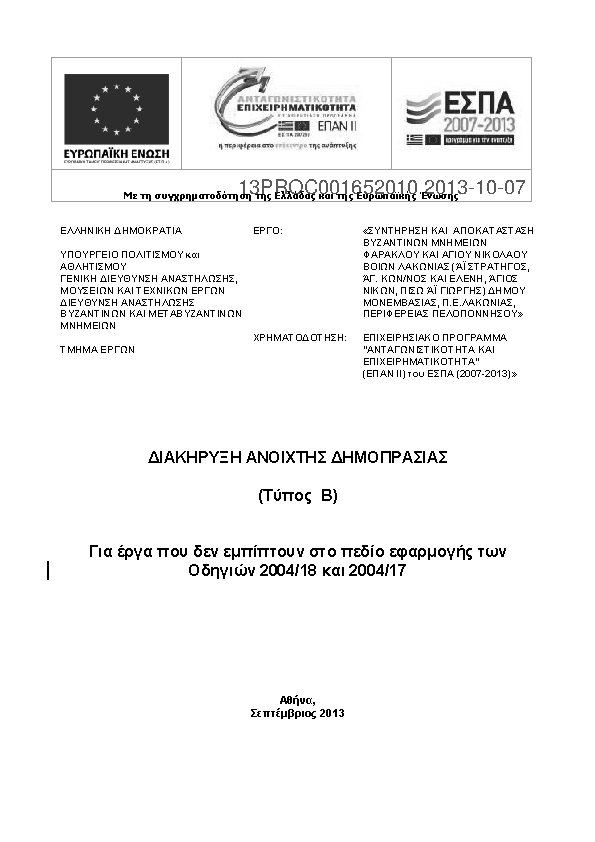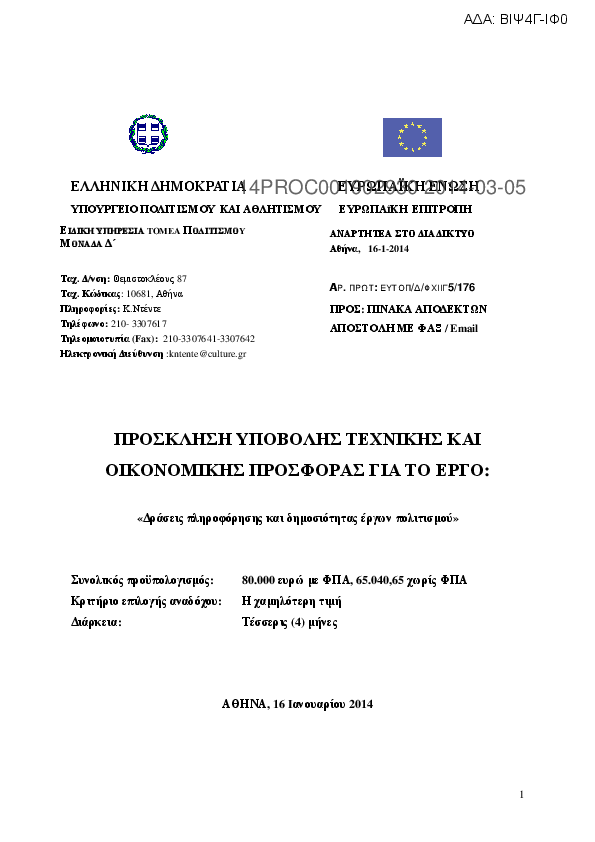 3. ΠΡΟΣΚΛΗΣΗ ΥΠΟΒΟΛΗΣ ΤΕΧΝΙΚΗΣ ΚΑΙ ΟΙΚΟΝΟΜΙΚΗΣ ΠΡΟΣΦΟΡΑΣ ΓΙΑ ΤΟ ΕΡΓΟ: «Δράσεις πληροφόρησης και δημοσιότητας έργων πολιτισμού»