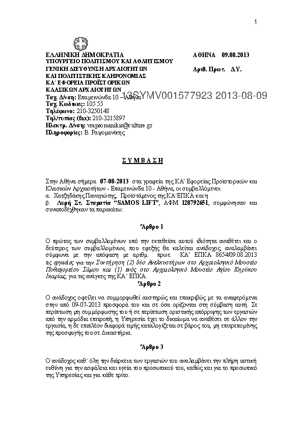 2. Συντήρηση (2) δύο Ανελκυστήρων στο Αρχαιολογικό Μουσείο Πυθαγορείου Σάμου και (1) ενός στο Αρχαιολογ