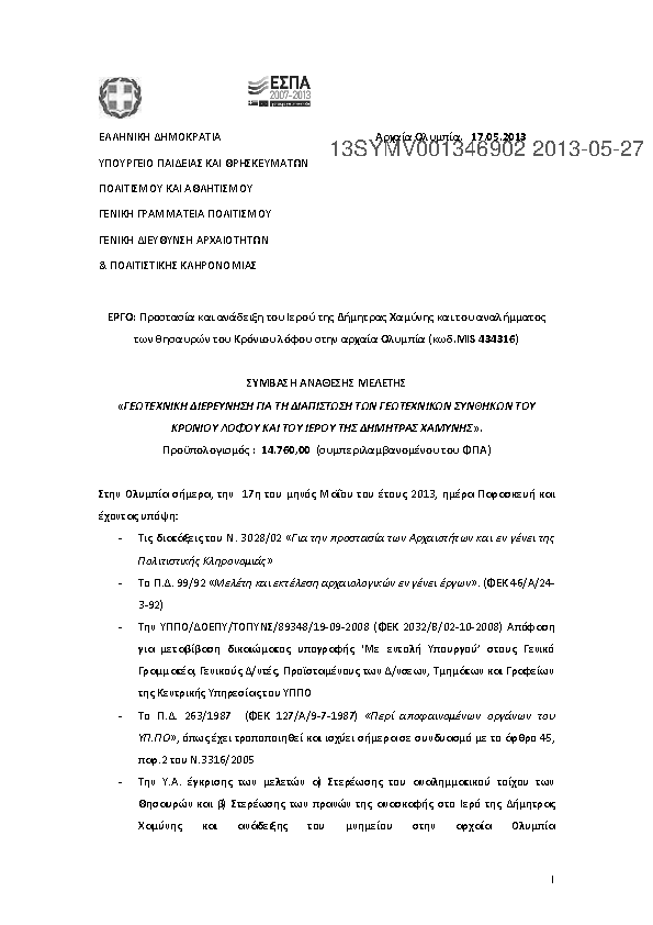 10. ΓΕΩΤΕΧΝΙΚΗ ΔΙΕΡΕΥΝΗΣΗ ΓΙΑ ΤΗ ΔΙΑΠΙΣΤΩΣΗ ΓΕΩΤΕΧ/ΚΩΝ ΣΥΝΘHKΩΝ ΚΡΟΝΙΟΥ ΛΟΦΟΥ & ΙΕΡΟΥ ΔΗΜΗΤΡΑΣ ΧΑΜΥΝΗΣ