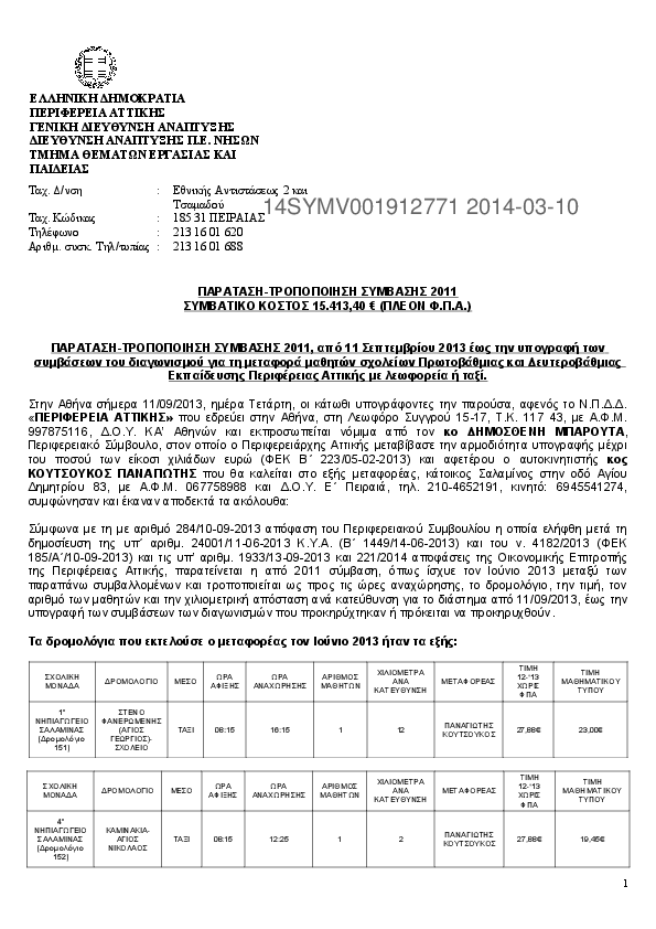 3. ΠΑΡΑΤΑΣΗ-ΤΡΟΠΟΠΟΙΗΣΗ ΣΥΜΒΑΣΗΣ 2011 ΜΕΤΑΦΟΡΑΣ ΜΑΘΗΤΩΝ ΠΕΡΙΦΕΡΕΙΑΣ ΑΤΤΙΚΗΣ ΑΠΟ ΠΑΝΑΓΙΩΤΗ ΚΟΥΤΣΟΥΚΟ