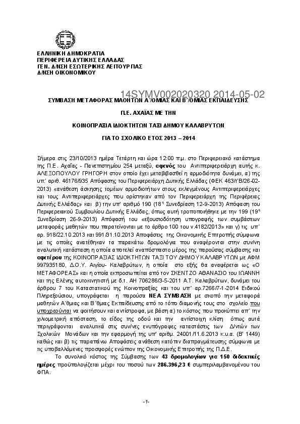 9. ΣΥΜΒΑΣΗ ΜΕΤΑΦΟΡΑΣ ΜΑΘΗΤΩΝ Α΄/ΘΜΙΑΣ ΚΑΙ Β΄/ΘΜΙΑΣ ΕΚΠΑΙΔΕΥΣΗΣ Π.Ε. ΑΧΑΪΑΣ ΜΕ ΤΗΝ ΚΤΕΛ Ν. ΑΧΑΙΑΣ Α.Ε.