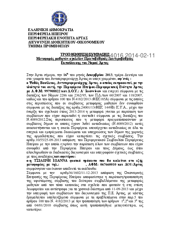 4. Σύμβαση μεταφοράς μαθητών Α/θμιας και Β/θμιας Εκπαίδευσης του Ν.Θεσπρωτίας (σχολ.έτος 2013-14)