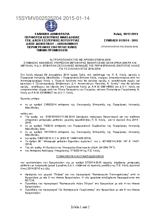 5. Τροπ/ση της αρ. ΠΔ2/2015 (1η τροπ/ση) σύμβασης μεταφοράς μαθητών χωρ.αρ. ΠΕ Πιερίας 2014-2015